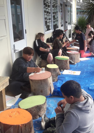 The second project, at intermediate level, focussed on the rejuvenation of double length picnic tables. This involved practical construction, prepping, and painting skills, as well as exploring concepts, designing and executing as a team.